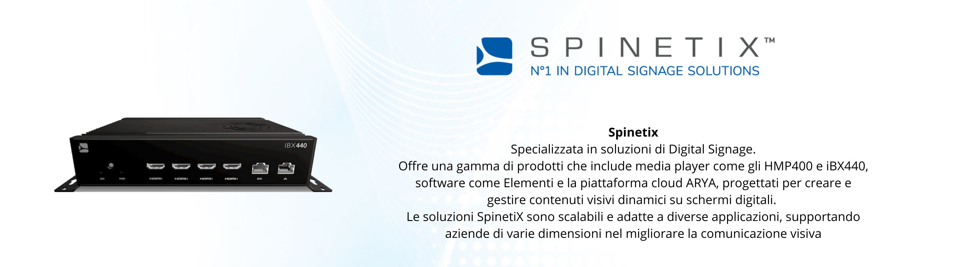 SPINETIX iBX410 player Wifi SX-HW-IBX410Whttps://exertisproav.it/img/cms/Schede Tecniche/Spinetix/SpinetiX-iBX410-tech-specs-web-EN.pdf